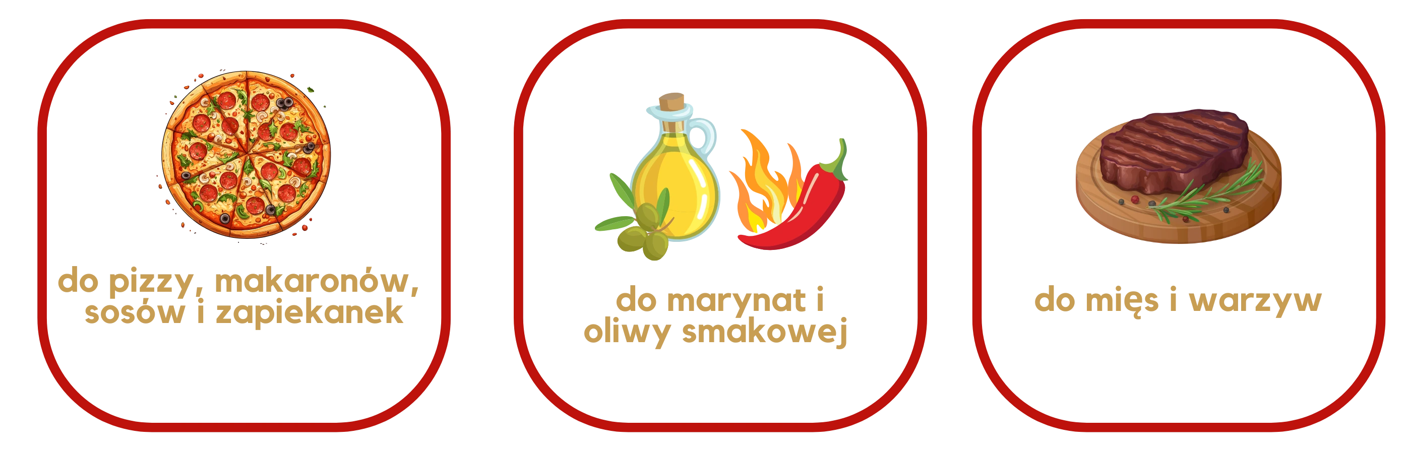 Zastosowanie: do potraw mięsnych, makaronów, sosów, pizzy, dań kuchni meksykańskiej i azjatyckiej, marynat i oliwy smakowej