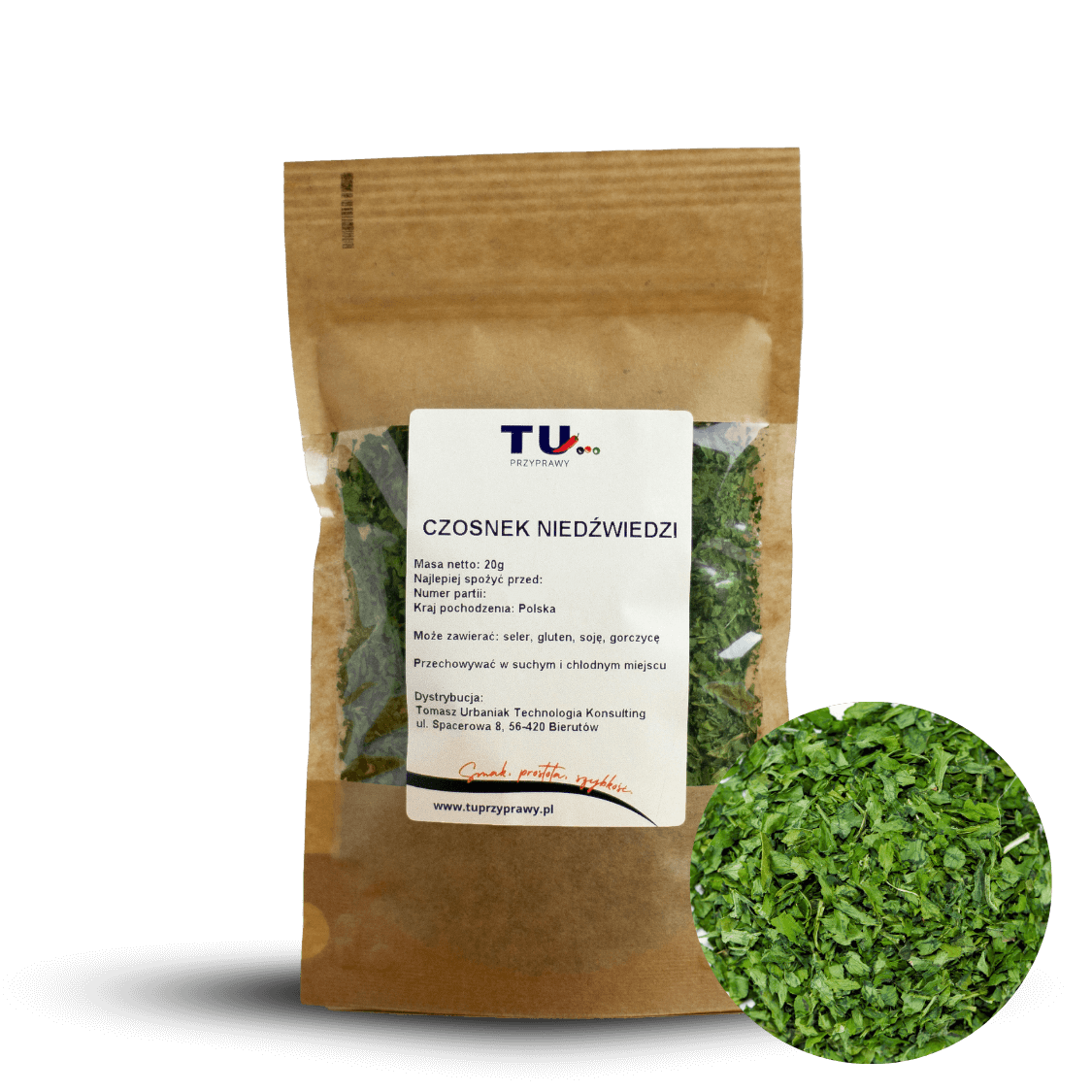 Czosnek niedźwiedzi – to suszone liście dzikiego czosnku, który rośnie naturalnie w lasach i łączy w sobie smak czosnku i ziół.