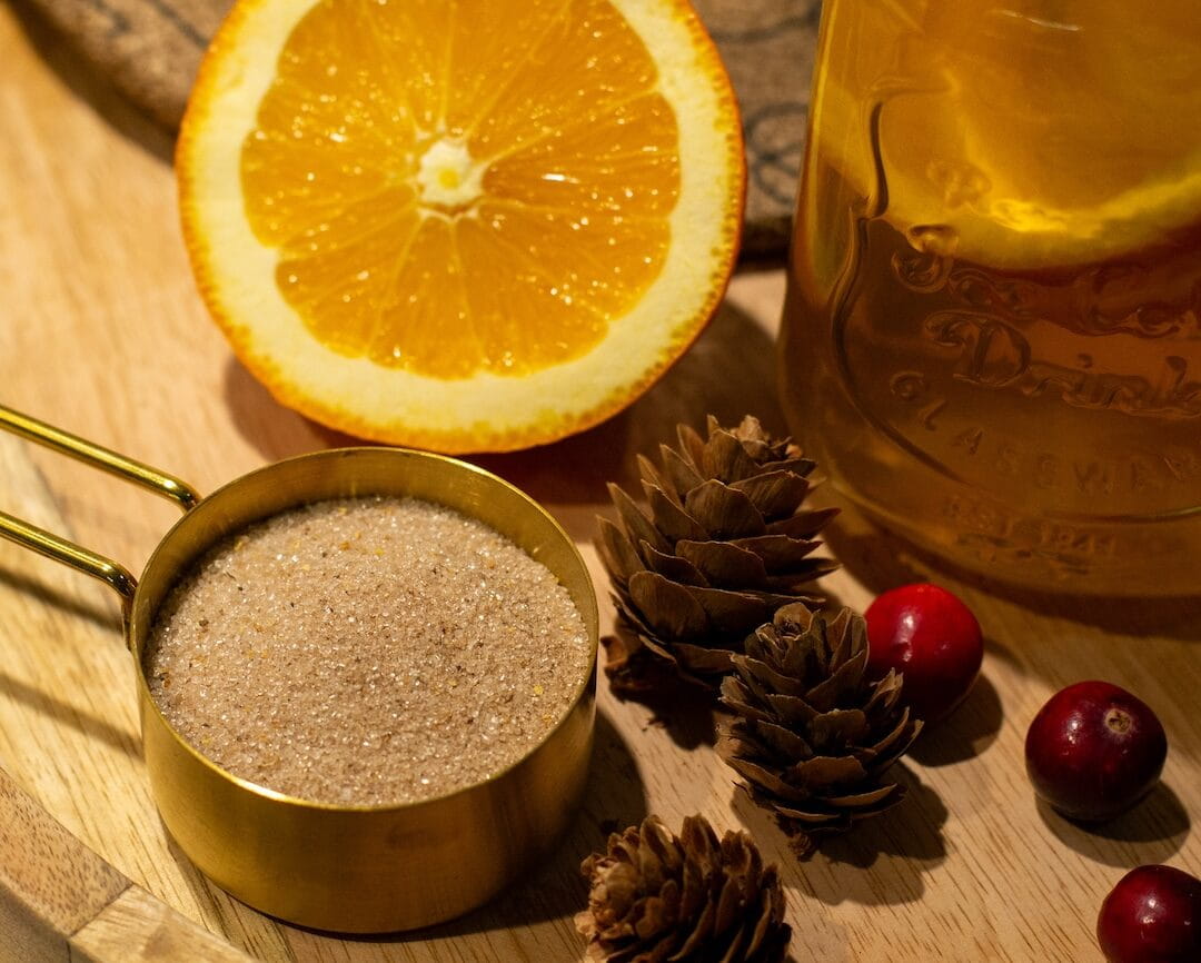 Składniki: cukier, cynamon, goździk, regulator kwasowości: kwas cytrynowy, skórka cytrynowa, imbir, kardamon, naturalne aromaty pomarańczy i żurawiny, pieprz czarny, gałka muszkatołowa, ziele angielskie