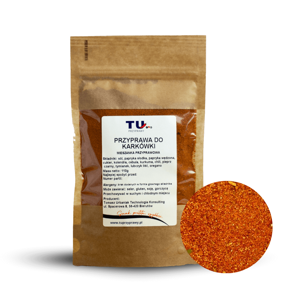 Zastosowanie: do przyprawiania karkówki pieczonej, grillowanej lub smażonej – świetna także do żeberek, szarpanego mięsa i dań jednogarnkowych.